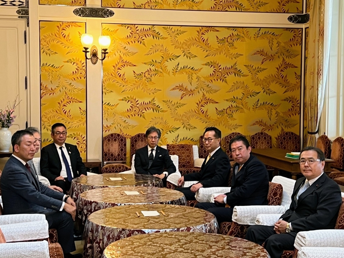 写真は、陛下をお迎えする前、呉越同舟で高木自民党国対委員長、御法川自民党国対委員長代理、立憲民主党の小宮山泰子さん・岡本あき子さん、日本維新の会の杉本和巳さんとのものです。