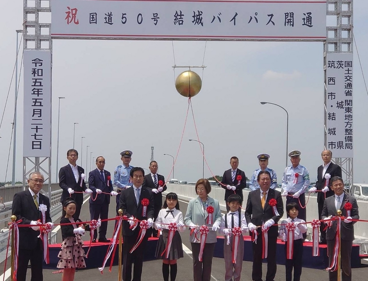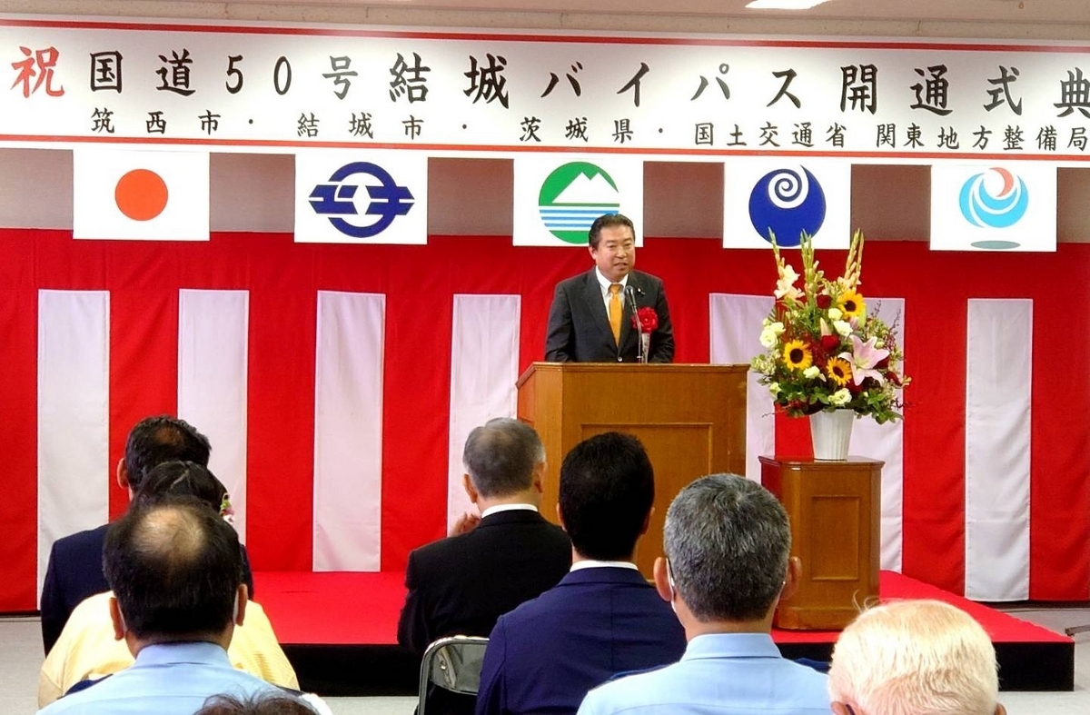 その後は筑西市に移動し、国道50号結城バイパス開通式典に。私が地元に戻って政治活動をした20年前、国道50号も294号も茨城1区内だけ片側1車線。恥ずかしく、申し訳ない思いでした。地元の多くの皆さまのご尽力で、ようやく鬼怒川を渡る橋が片側2車線となりました。残る下館バイパス、協和バイパス、桜川筑西インター周辺の整備に向けて、頑張ってまいります。